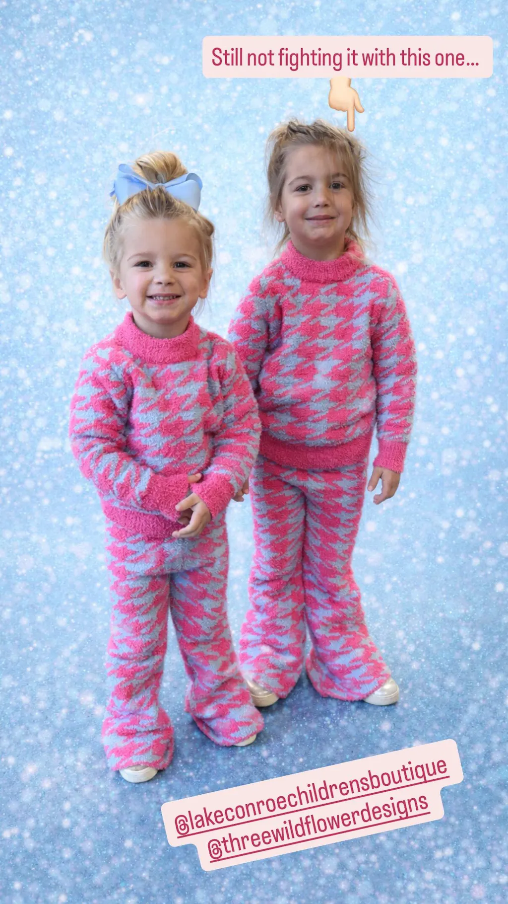 Wrap yourself in ultimate comfort with our fuzzy houndstooth patterned set, featuring a vibrant combination of bright blue and pink. Perfect for lounging or making a stylish statement, this cozy ensemble offers a luxuriously soft feel and a modern twist on a classic print. Elevate your relaxation game with this must-have addition to your wardrobe!